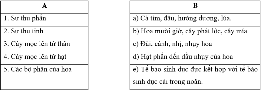 Câu 1 trang 48 VBT Khoa học lớp 5: Nối mỗi nội dung ở cột A với một nội dung ở cột B cho phù hợp.