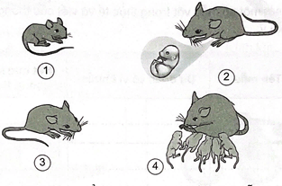 b) Thứ tự vòng đời của chuột: (2): thai, (4): chuột con mới sinh ra, (1): chuột con, (3): chuột trưởng thành