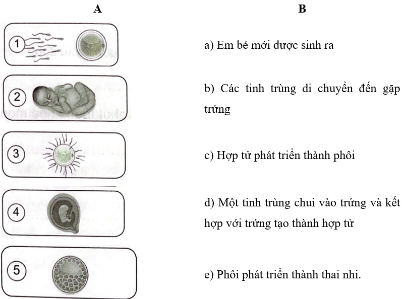 Câu 3 trang 61 VBT Khoa học lớp 5: Nối hình ở cột A với chú thích ở cột B cho phù hợp