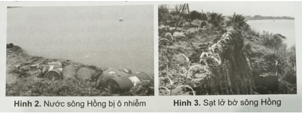 ♦ Yêu cầu a) Sông Hồng đang đứng trước nhiều nguy cơ như: sạt lở hai bên bờ, ô nhiễm nguồn nước,...