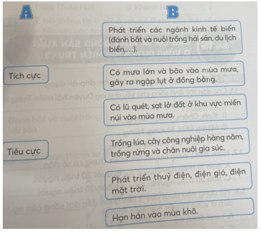 Bài tập 8 trang 55 Vở bài tập Lịch Sử và Địa Lí lớp 4: Nối thông tin ở cột A với thông tin ở cột B cho phù hợp về tác động của môi trường thiên nhiên đối với sản xuất và đời sống của người dân vùng Duyên hải miền Trung.