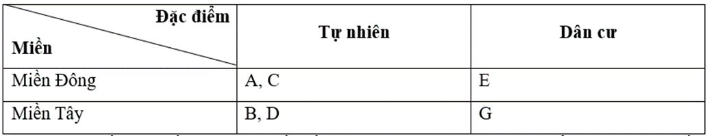 Câu 9 trang 47 VBT Lịch Sử và Địa Lí lớp 5: Chọn các ý và sắp xếp vào bảng dưới đây sao cho đúng với đặc điểm tự nhiên, dân cư ở miền Đông và miền Tây Trung Quốc.