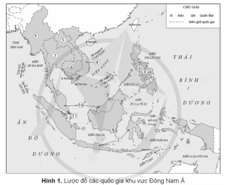 Câu 5 trang 53 VBT Lịch Sử và Địa Lí lớp 5: Ghép tên các nước dưới đây tương ứng với các vị trí được đánh số trên hình 1.