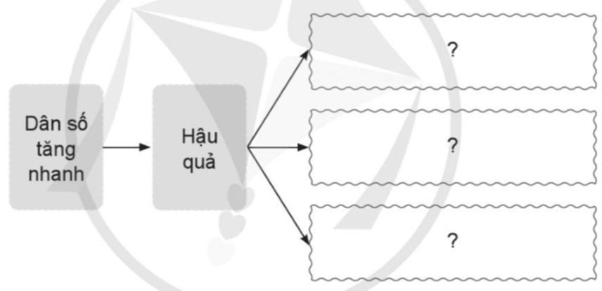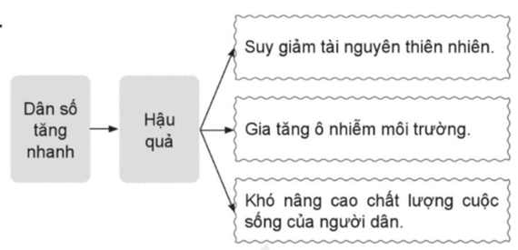 Câu 6 trang 14 VBT Lịch Sử và Địa Lí lớp 5: Hoàn thành sơ đồ theo gợi ý dưới đây để thấy được hậu quả của dân số tăng nhanh ở Việt Nam.
