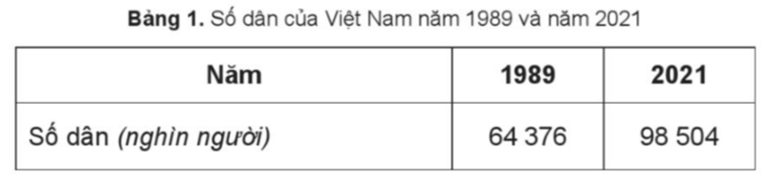 a) Tính số dân tăng lên trung bình mỗi năm của Việt Nam trong giai đoạn 1989 – 2021, đơn vị tính là người.