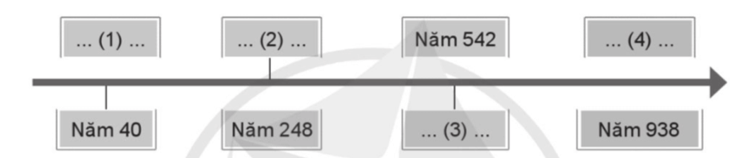 Câu 6 trang 24 VBT Lịch Sử và Địa Lí lớp 5: Ghép tên cuộc đấu tranh cho sẵn vào chỗ chấm (......) đã được đánh số để hoàn thành đường thời gian thể hiện các cuộc đấu tranh tiêu biểu trong thời kì Bắc thuộc.