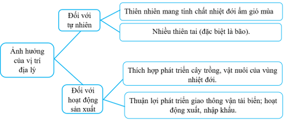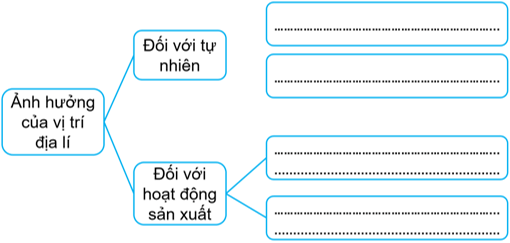 Bài tập 2 trang 5 Vở bài tập Lịch Sử và Địa Lí lớp 5: Hoàn thành sơ đồ dưới đây về ảnh hưởng của vị trí địa lí ở nước ta.