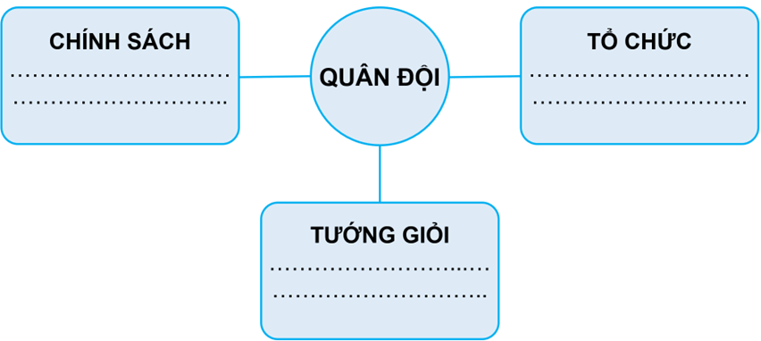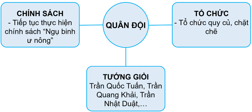 Bài tập 4 trang 40 Vở bài tập Lịch Sử và Địa Lí lớp 5: Dựa vào thông tin mục 1 (trang 44 – 45 SGK), để hoàn thành sơ đồ về quân đội nhà Trần.