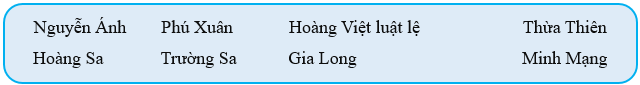 Năm 1802, sau khi đánh bại Triều Tây Sơn, (1)… lên ngôi, lập ra Triều Nguyễn, định đô ở (2)… (Thừa Thiên Huế), lấy niên hiệu là (3)… Các vua Triều Nguyễn đã từng bước củng cố bộ máy nhà nước, cải cách hành chính, thống nhất đất nước,...