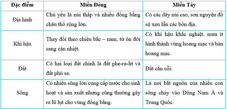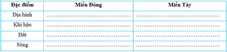 Bài tập 4 trang 68 Vở bài tập Lịch Sử và Địa Lí lớp 5: So sánh đặc điểm tự nhiên của miền Đông với miền Tây Trung Quốc bằng cách hoàn thành bảng dưới đây.