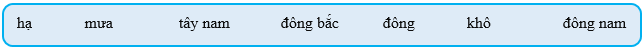Việt Nam một năm có hai mùa gió chính: gió mùa mùa đông chủ yếu có hướng (1)… và gió mùa mùa hạ chủ yếu có hướng (2)…, (3)… .