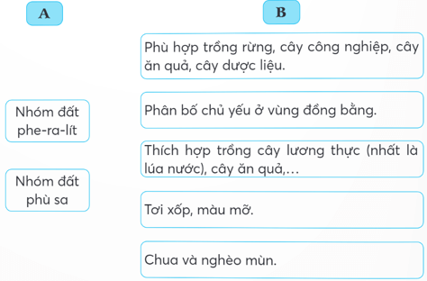 Bài tập 8 trang 12 Vở bài tập Lịch Sử và Địa Lí lớp 5: Nối thông tin ở cột A với thông tin ở cột B cho phù hợp về đặc điểm đất của nước ta.