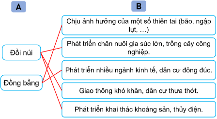 Bài tập 2 trang 9 Vở bài tập Lịch Sử và Địa Lí lớp 5: Nối thông tin ở cột A với thông tin ở cột B cho phù hợp về những thuận lợi và khó khăn của địa hình đối với đời sống và hoạt động sản xuất.