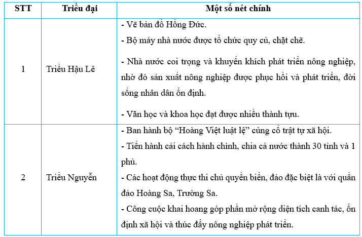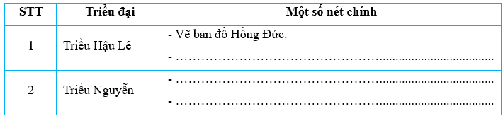 Bài tập 1 trang 104 Vở bài tập Lịch Sử và Địa Lí lớp 5: Hoàn thành bảng một số nét chính về lịch sử Việt Nam dưới Triều Hậu Lê và Triều Nguyễn.