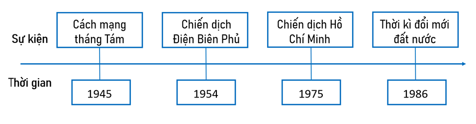 Bài tập 2 trang 104 Vở bài tập Lịch Sử và Địa Lí lớp 5: Hoàn thành trục thời gian thể hiện một số sự kiện tiêu biểu của lịch sử Việt Nam từ năm 1945 đến nay.