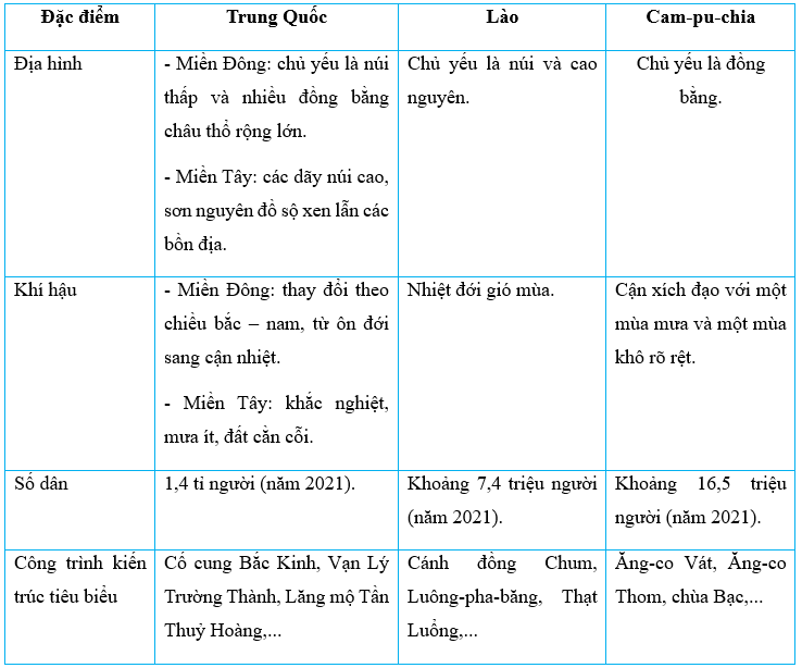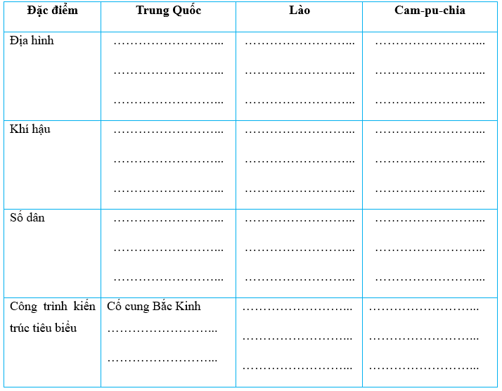 Bài tập 5 trang 106 Vở bài tập Lịch Sử và Địa Lí lớp 5: Hoàn thành bảng dưới đây về các nước láng giềng của Việt Nam.