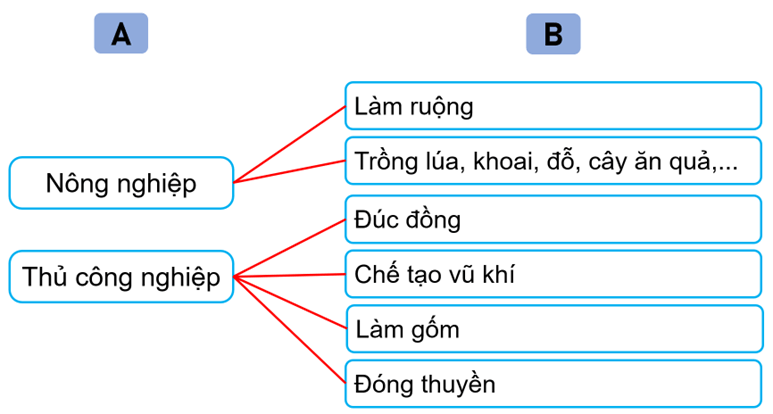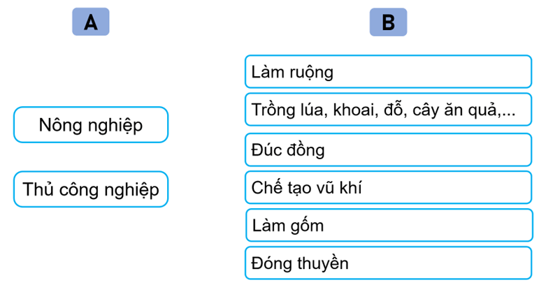 4.2. Nối thông tin ở cột A với thông tin ở cột B cho phù hợp về hoạt động kinh tế của cư dân Văn Lang, Âu Lạc.