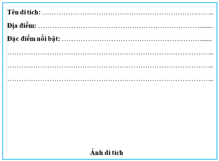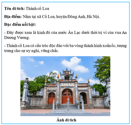 Bài tập 7 trang 26 Vở bài tập Lịch Sử và Địa Lí lớp 5: Làm thẻ thông tin về một di tích lịch sử có liên quan đến thời Văn Lang, Âu Lạc (gợi ý: Đền Hùng, thành Cổ Loa,…).