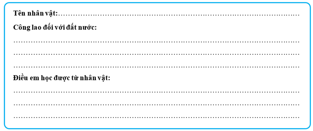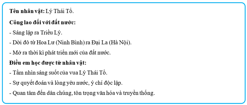 Bài tập 8 trang 37 Vở bài tập Lịch Sử và Địa Lí lớp 5: Hoàn thành thẻ nhớ về một nhân vật lịch sử có đóng góp đối với đất nước dưới Triều Lý mà em yêu thích.