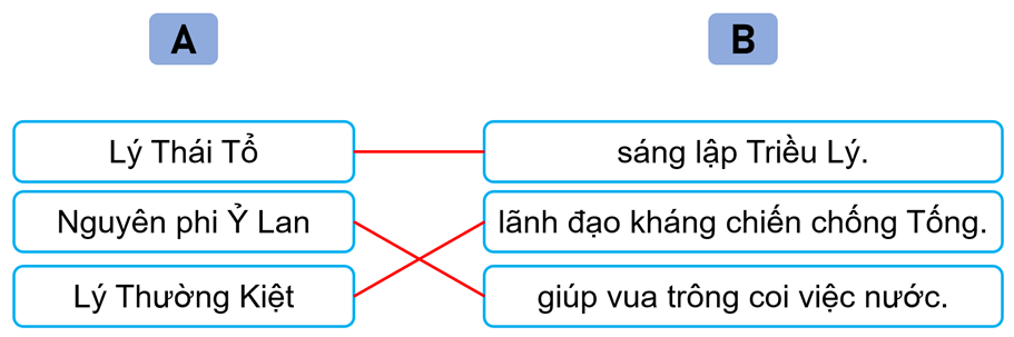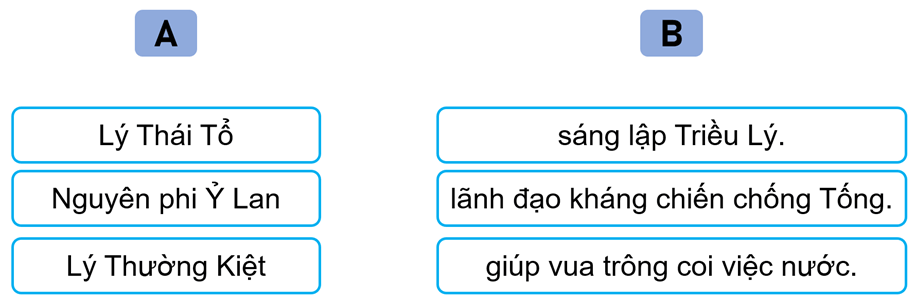 Bài tập 4 trang 35 Vở bài tập Lịch Sử và Địa Lí lớp 5: Nối thông tin ở cột A với thông tin ở cột B cho phù hợp về một số nhân vật lịch sử tiêu biểu của Triều Lý.