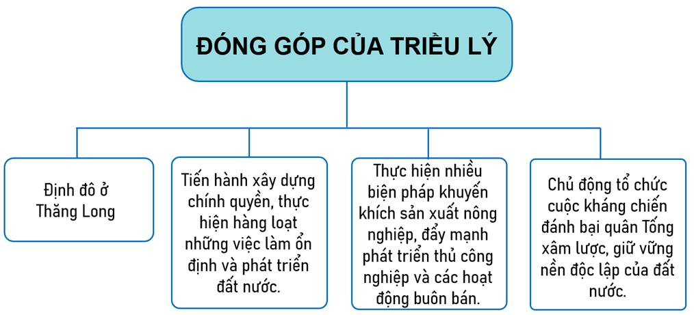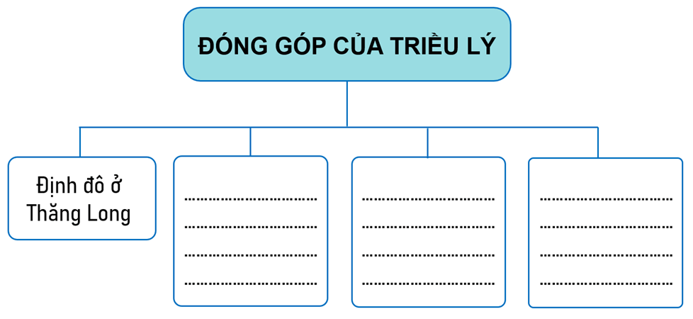 Bài tập 7 trang 36 Vở bài tập Lịch Sử và Địa Lí lớp 5: Hoàn thành sơ đồ tư duy dưới đây về một số đóng góp của Triều Lý đối với dân tộc.