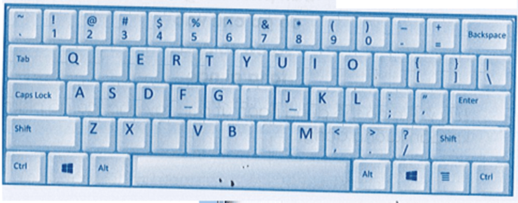 Vở bài tập Tin học lớp 3 trang 27 Câu A67: Em hãy điền các phím còn thiếu vào hình bàn phím dưới đây: