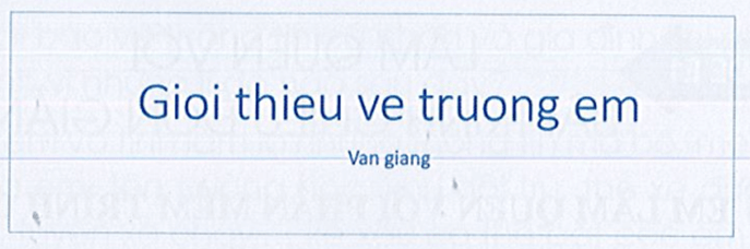 - Trang trình chiếu 1: Tiêu đề: Gioi thieu ve truong em; Nội dung: Tên của em.