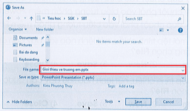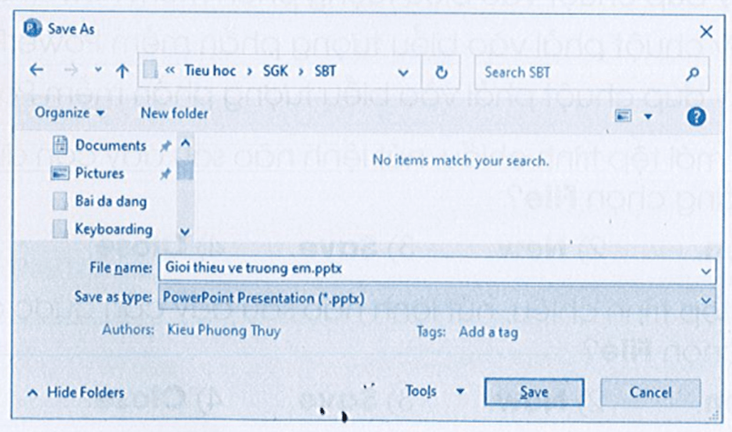 Lưu lại tệp trình chiếu với tên là “Truong em”.