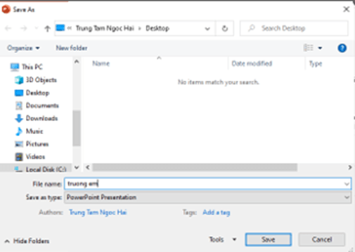 Nhấn Save để lưu lại tệp trình chiếu với tên là “Truong em”.