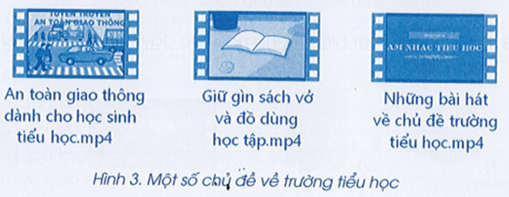 Vở bài tập Tin học lớp 3 trang 39 Câu C11: Trong một thư mục có một số tệp mà biểu tượng của chúng như trong Hình 3. Theo em, đây là các tệp thuộc loại nào?