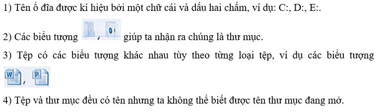 4) Ổ đĩa cũng được xem là thư mục, gọi là thư mục gốc. Nó có thể là thư mục con của một thư mục khác.