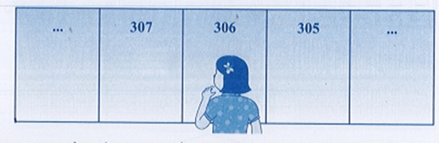 Bạn Hoa đang nhìn vào cửa phòng 306, bên phải là phòng 305, bên trái là phòng 307. Vậy bạn Hoa cần quay sang trái đi dọc theo hành lang và nhìn bên tay phải, qua 3 phòng nữa (307, 308, 309) là đến phòng 310 nơi bác Hương đang ở.