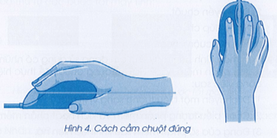 Vở bài tập Tin học lớp 3 trang 9 Câu A16: Câu nào sau đây KHÔNG nêu đúng cách cầm chuột bằng tay phải như trong Hình 4?
