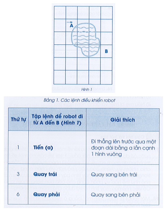 - Dãy lệnh điều khiển robot đi từ điểm A đến điểm B (Hình 1) là: