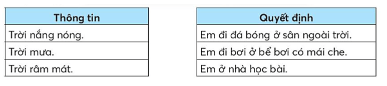 Vở bài tập Tin học lớp 3 trang 4 Bài tập 1: Hãy chỉ ra đâu là thông tin, đâu là quyết định trong các tình huống dưới đây.