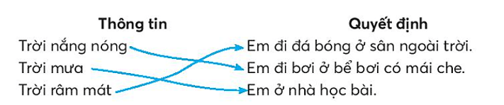 Vở bài tập Tin học lớp 3 trang 4 Bài tập 2: Hãy nối mỗi mục thông tin ở cột bên trái với một quyết định của cột bên phải cho phù hợp.