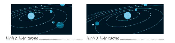 c) Các hình ảnh dưới đây được lấy từ phần mềm SolarSystem. Em hãy điền vào chỗ chấm tên hiện tượng mà phần mềm mô phỏng tương ứng với mỗi hình.