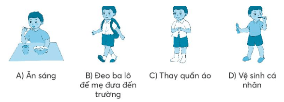 Vở bài tập Tin học lớp 3 trang 39 Bài tập 2: Hãy sắp xếp các việc dưới đây theo thứ tự phù hợp mà bạn nhỏ cần thực hiện vào buổi sáng để chuẩn bị đi học.
