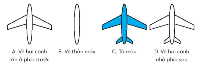 Vở bài tập Tin học lớp 3 trang 41 Bài tập 2: Hãy sắp xếp các hình dưới đây theo thứ tự các bước vẽ máy bay: