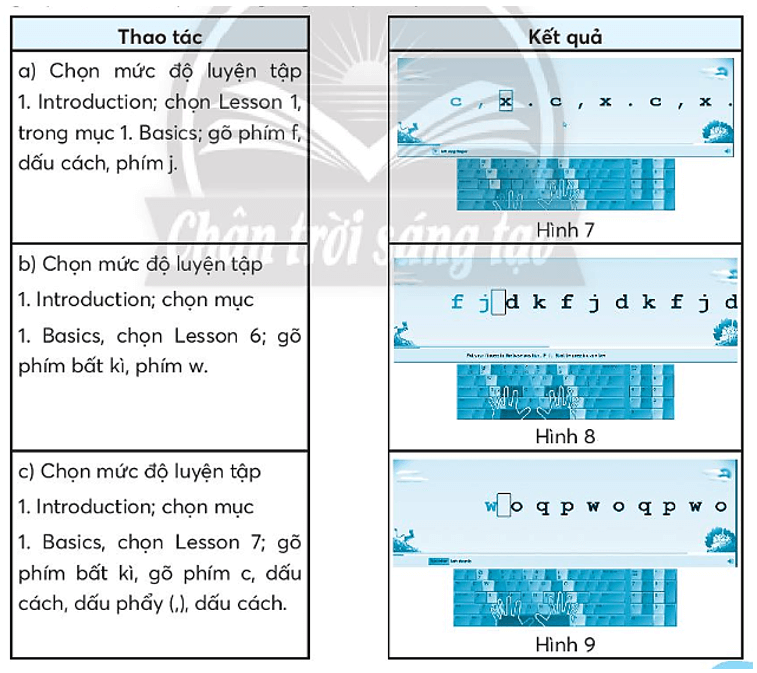Vở bài tập Tin học lớp 3 trang 15 Bài tập 6: Kích hoạt phần mềm RapidTying, thực hành các thao tác ở cột bên trái rồi ghép nối với kết quả tương ứng ở cột bên phải.