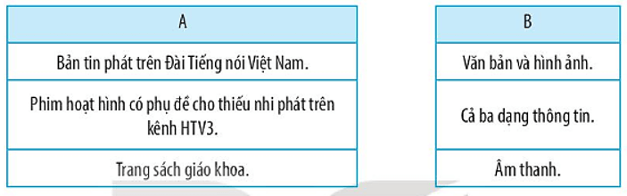 Vở bài tập Tin học lớp 3 trang 8 Câu 10: Hãy nối mỗi loại hình thông tin đại chúng ở mỗi cột bên trái với những dạng thông tin ứng với loại hình đó ở cột bên phải.