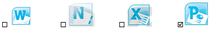 Vở bài tập Tin học lớp 3 trang 43 Câu 1: Nháy đúp chuột vào biểu tượng nào sau đây trên màn hình nền để khởi động phần mềm trình chiếu PowerPoint? Đánh dấu ✔ vào ô trống trước đáp án đúng.