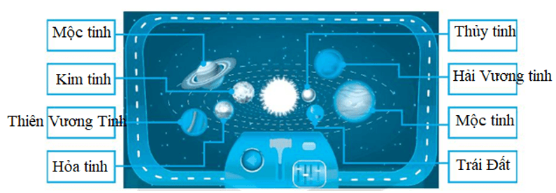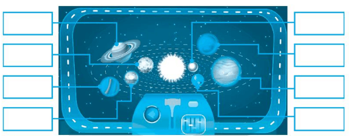 Vở bài tập Tin học lớp 3 trang 49 Câu 4: Hãy điền tên các hành tinh: Kim tinh, Thủy tinh, Hỏa tinh, Thổ tinh, Mộc tinh, Trái Đất, Thiên Vương tinh, Hải Vương tinh vào ô trống cho thích hợp.