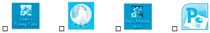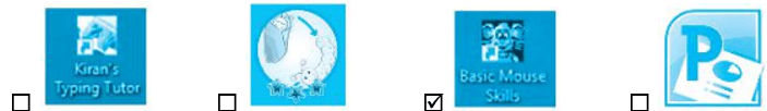 Vở bài tập Tin học lớp 3 trang 51 Câu 1: Đâu là biểu tượng của phần mềm luyện tập chuột Basic Mouse Skills. Đánh dấu ✔ vào ô trống trước đáp án đúng.