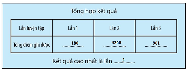 Vở bài tập Tin học lớp 3 trang 53, 54 Câu 7: Quan sát màn hình tổng kết điểm sau 3 lần luyện tập của bạn Hương rồi điền vào chỗ trống để hoàn thành bản nhận xét kết quả luyện tập của bạn Hương.
