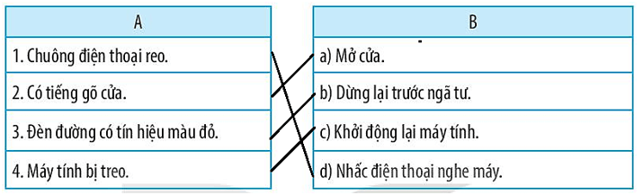 - Nếu chuông điện thoại reo thì em sẽ nhấc điện thoại nghe máy.
