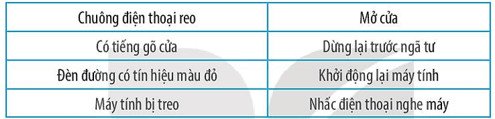 Vở bài tập Tin học lớp 3 trang 58 Câu 2: Hãy điền việc em thực hiện tương ứng sau mỗi điều kiện.