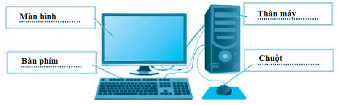 Vở bài tập Tin học lớp 3 trang 12 Câu 1: Viết tên các bộ phận cơ bản của máy tính để bàn: