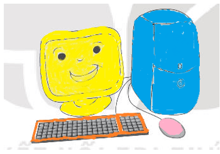Vở bài tập Tin học lớp 3 trang 12 Câu 2: Hãy tô màu xanh lam cho thân máy, màu vàng cho màn hình, màu hồng cho chuột và màu cam cho bàn phím.