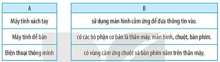 Vở bài tập Tin học lớp 3 trang 14 Câu 8: Hãy nối mỗi ô ở cột A với một ô có nội dung tương ứng cột B.
